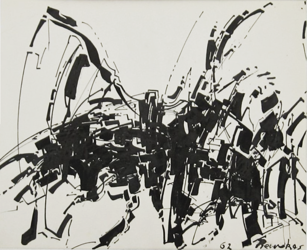 Alkis PIERRAKOS Αλκης ΠΙΕΡΡΑΚΟΣ (1920 Thessalonique, Grèce – 2017 Naupacte, Grèce) Ses œuvres ont été exposées dans de nombreuses expositions dans différents pays, dont la France et la Grèce. 32×25, encre de Chine. Collection AKTI