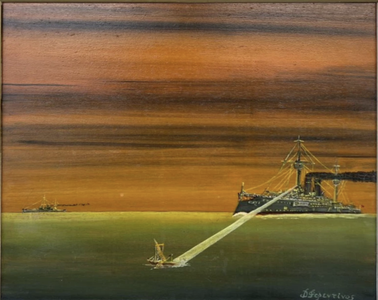FERENTINOS Dimitris ΦΕΡΕΝΤΙΝΟΣ Δημήτρης (1908 Vraila, Roumanie.1986 Grèce) Très actif en Grèce, ses œuvres figurent dans des pinacothèques et d’autres établissements importants en Grèce et à l’étranger. 40×32 acrylique sur contreplaqué. Collection AKTI